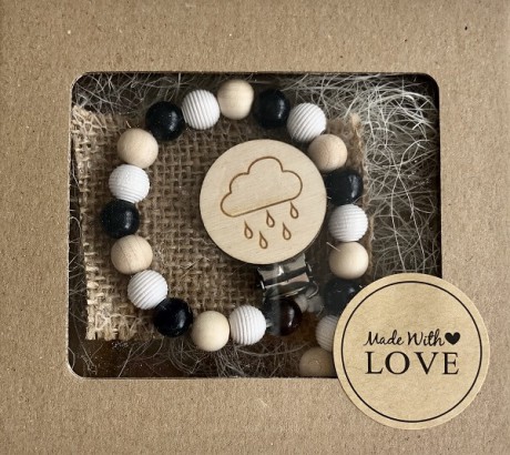Ręcznie robiona, drewniana zawieszka do smoczka | Chmurka z deszczem | Luna