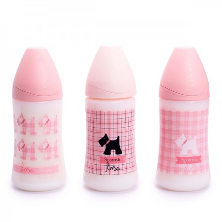 Butelka 270ml | smoczek anatomiczny silikonowy | Scottish różowa z czarnym pieskiem | Suavinex