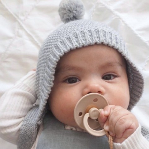 Końcówka smoczka uspokajającego BIBS jest okrągła i została wykonana z organicznego kauczuku naturalnego. Tarczka smoczka została wyprofilowana tak aby nie dotykać do ust i brody Maluszka zapobiegając tym samym zaczerwienieniom, krostkom, wykwitom, czy też poważniejszym zakażeniom skóry. Osłona dodatkowo posiada otworki dzięki czemu Maluszek łatwo oddycha trzymając smoczek w buzi.