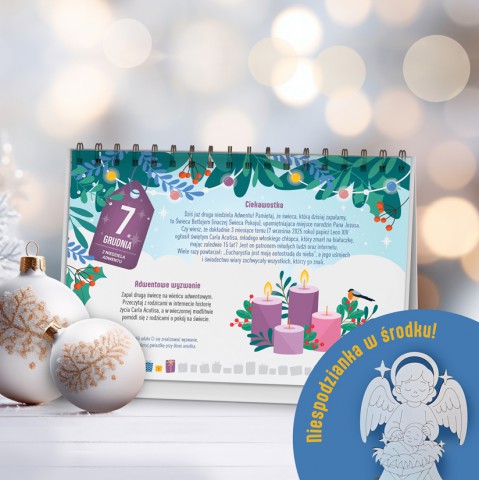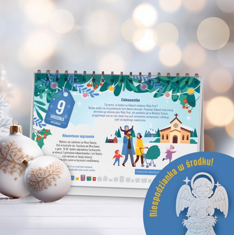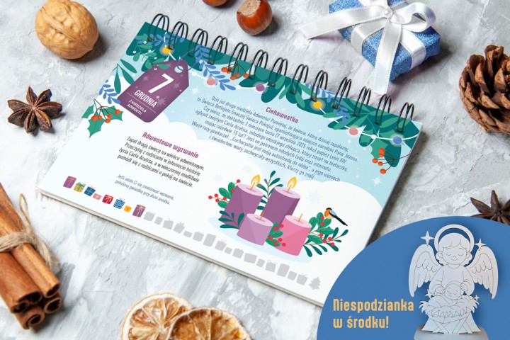• poręczny format - można go ustawić w kuchni, jadalni, salonie, czyli wszędzie tam, gdzie spotyka się rodzina! Wraz z aniołkiem publikacja tworzy piękny, rodzinny kącik adwentowy,